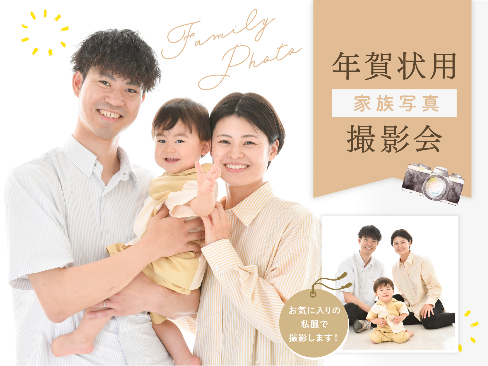 お正月の挨拶にもぴったりの温かい雰囲気の家族写真を撮影します。