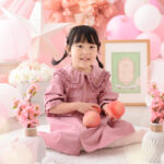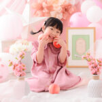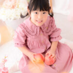 お姫様気分になれちゃうロマンチックなフォトブースで桃といっしょに撮影します。