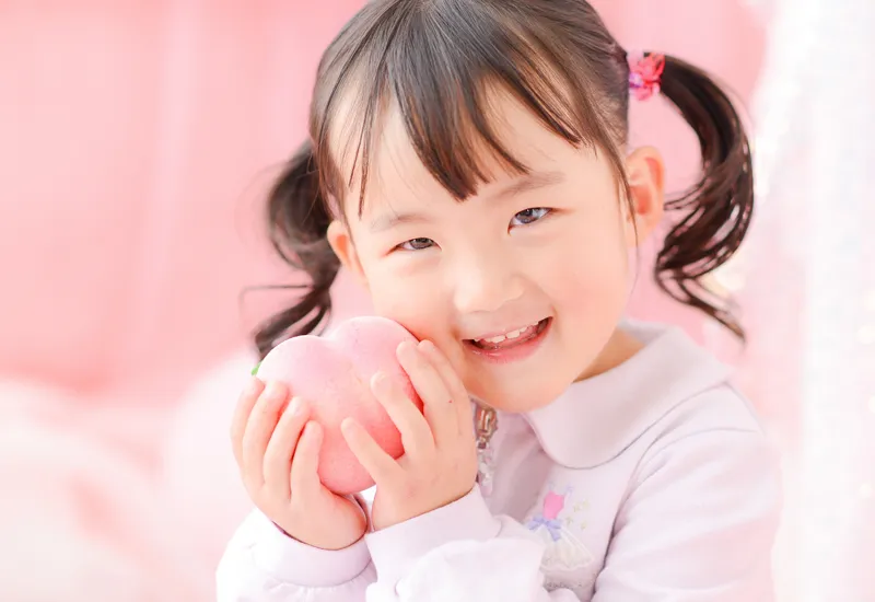 桃を手に持ってかわいくポーズしてみてくださいね!
