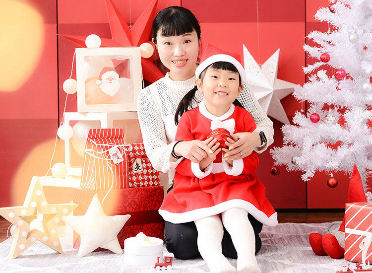 私服で撮影するのでぜひお気に入りのお洋服でお越しください。もちろんサンタやトナカイなどの衣装でのご参加も大歓迎!