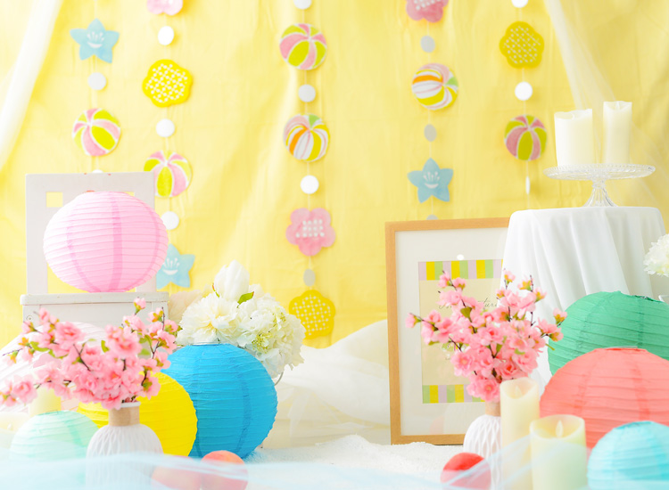 今回の期間限定フォトブースはひなあられのようなカラフルな色で見てるだけで楽しくなるようなひな祭りのフォトブースをコーディネートしました。性別に関係なく楽しめるフォトブースです!