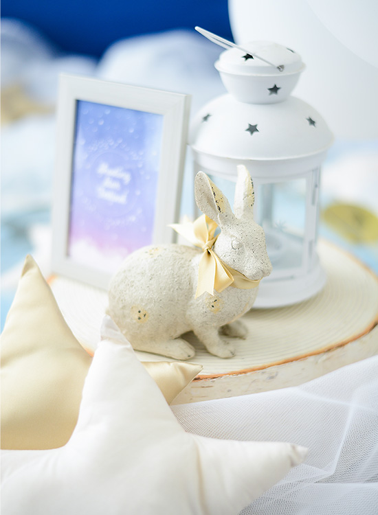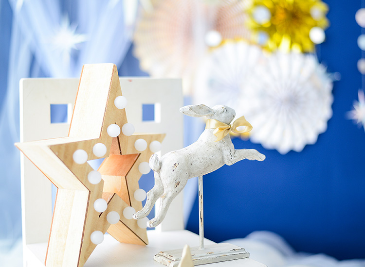 ”七夕”をテーマに、たくさんの星とキラキラアイテムでまとめました。まるで雲の上で星を見ているような、とってもドリーミーな気分になれるフォトブースです♪